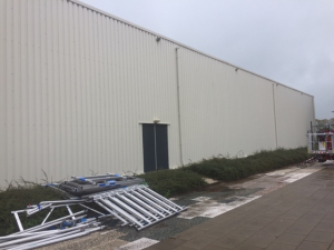 Intussen is de sporthal naast onze banen (eindelijk) van een nieuw kleurtje voorzien. Dat ziet er een stuk beter uit. Ook de deuren zijn geverfd.