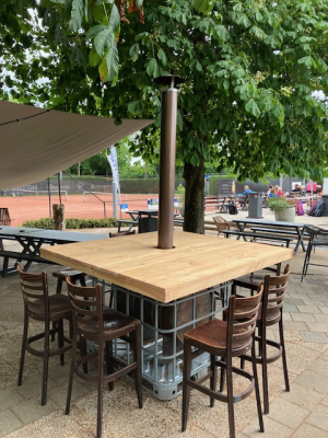 Intussen hebben Robert, Rob en anderen een mooie kacheloven met bar geproduceerd, waarin gezellig een warm vuurtje kan worden gestookt, terwijl men ook gewoon rond de kachel kan zitten aan de daarop gebouwde bar.