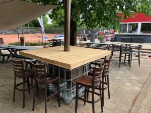 De oude houten bankjes op de banen die recent zijn vervangen door nieuwe van kunststof omdat ze hun beste tijd gehad hadden, worden intussen verzaagd tot brandhout. Er zijn nog enkele van die bankjes die deze of gene mogelijk nog zou kunnen en willen gebruiken in zijn tuin of zo. Als dat het geval is, neem er vooral een mee.