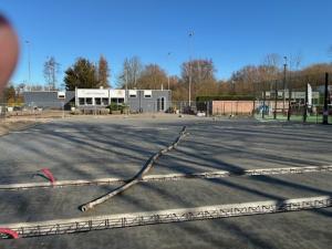 Bericht van Rene Middelkoop: Zoals het er nu voorstaat, en als het weer het toelaat, wordt op 16 februari materiaal voor de nieuwe padelbanen aangevoerd en wordt vanaf 17 februari  begonnen met de opbouw.